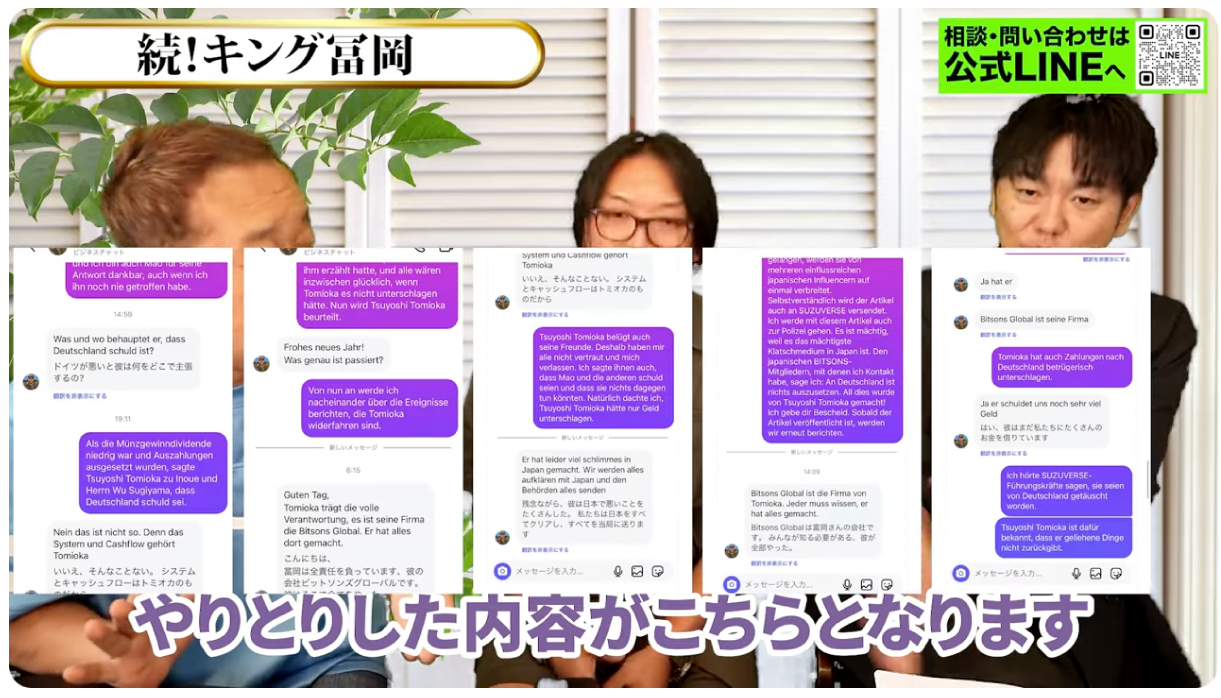 本日は、ゲストに島田さん、松井さんをお迎えし、キング冨岡氏とビットサンズの闇について、証拠を元に徹底的に解説しました。お二人とも、大変な勇気を持って証言していただき、本当にありがとうございました。