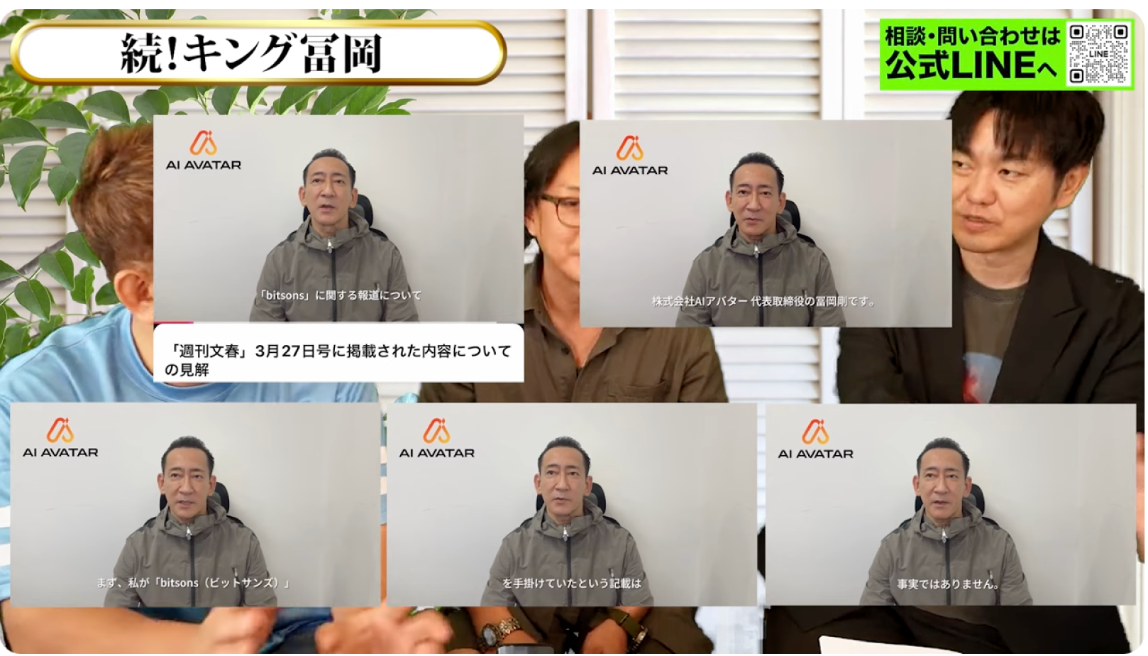 実は、AIアバターの関連動画の中で、「ビットサンズとは関わりがありません」と冨岡氏が主張する動画が一度公開されました。私たちはすぐにその証拠としてスクリーンショットを撮ったのですが、どういうわけか、その動画は公開後すぐに削除されたのです。