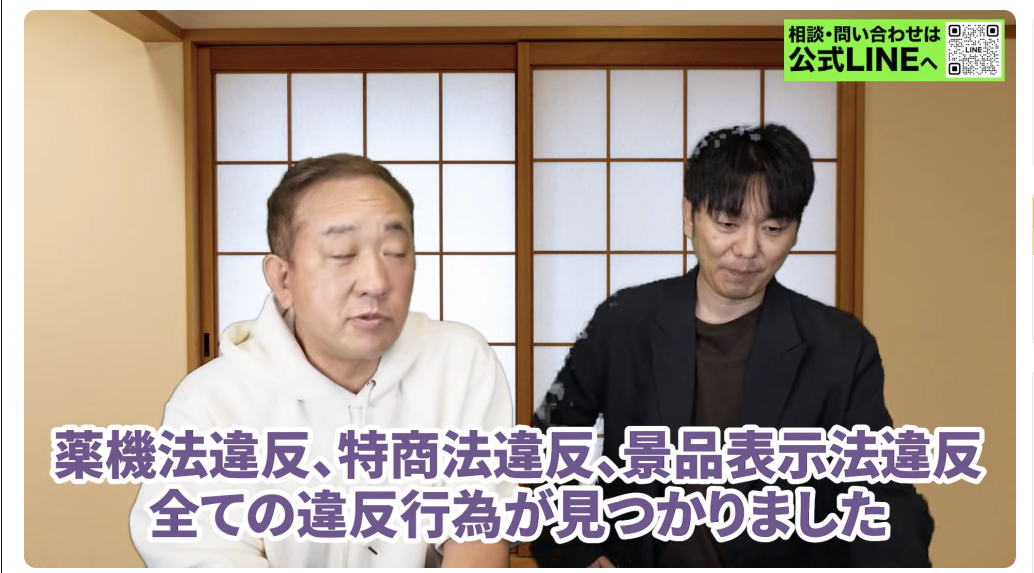 まず、薬機法違反、特商法違反、景品表示法違反。全ての点で違反が見つかりました。