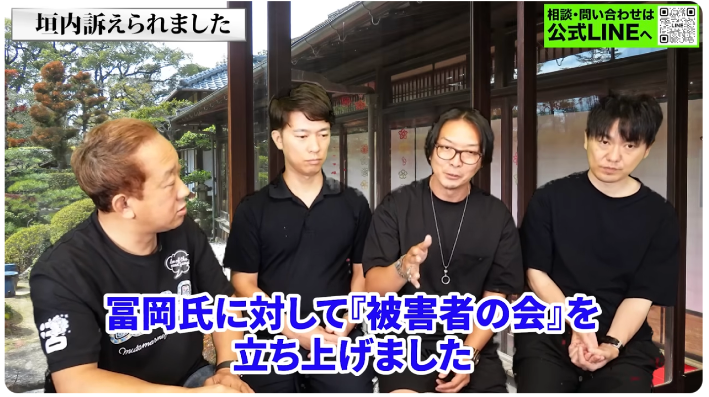 私が動画で「5000万円くらい騙し取られた人がいる」と発言したこと。これに対し、「冨岡=騙す人というイメージがつき損害を受けた」と主張しています。