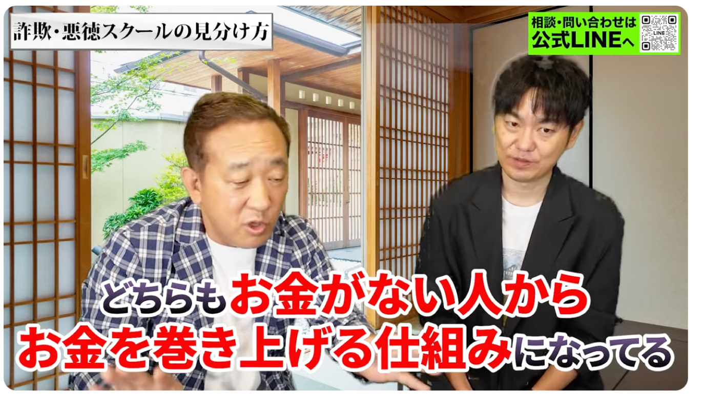- 相手の実績は「誰を騙した実績か」、お金の流れは「誰から巻き上げたお金か」を見抜け。